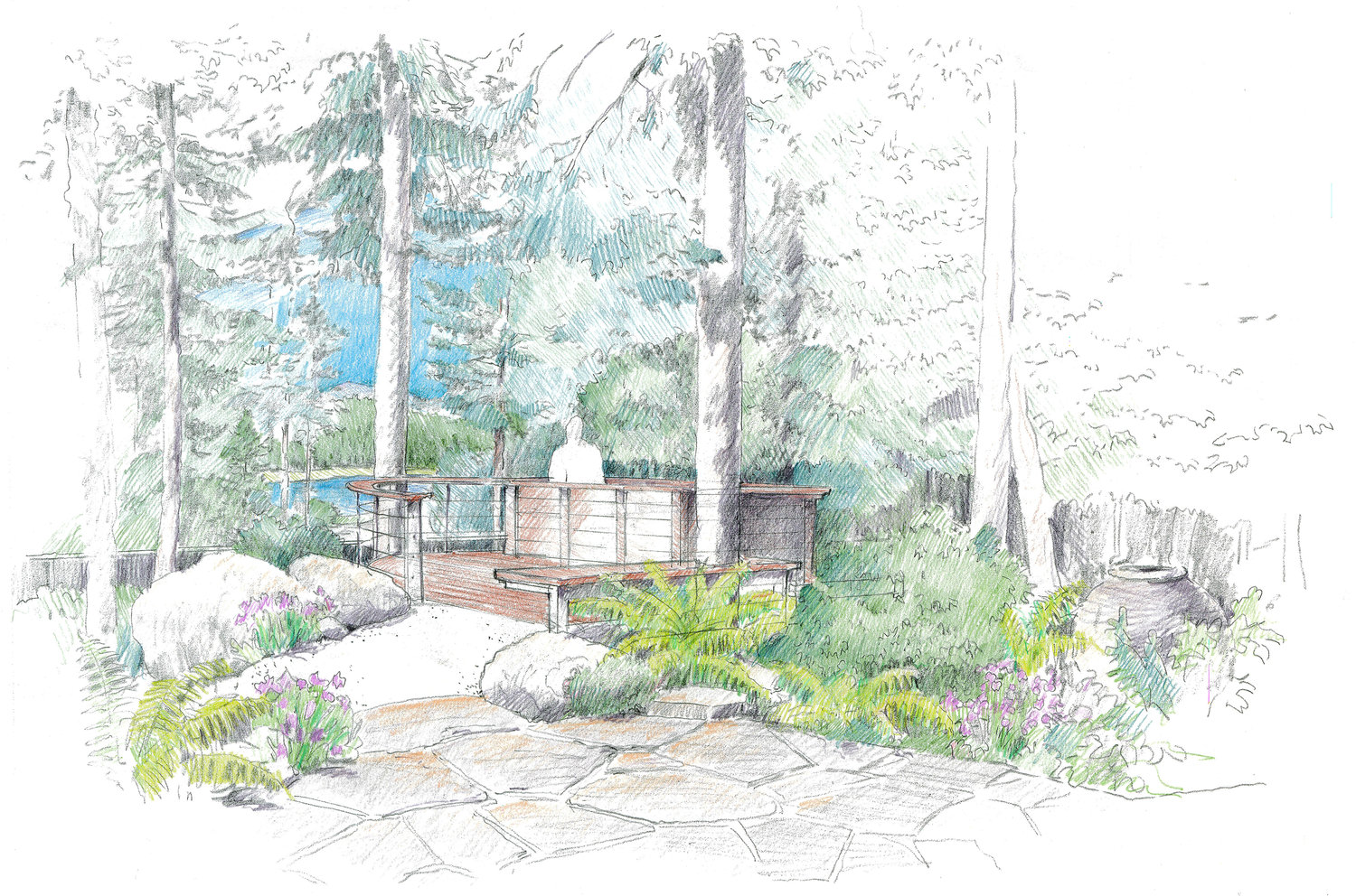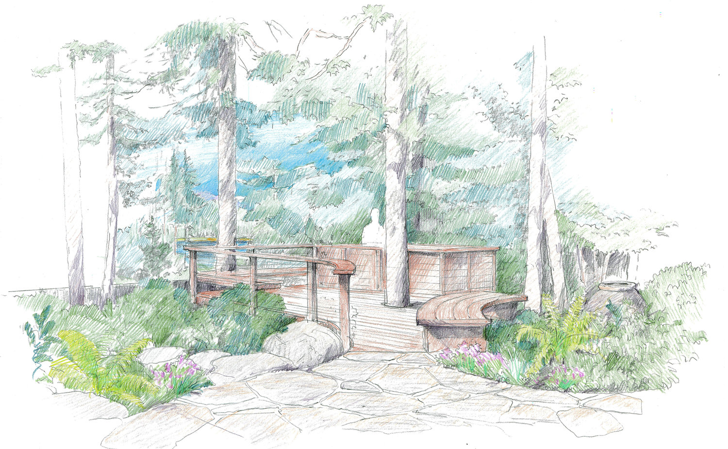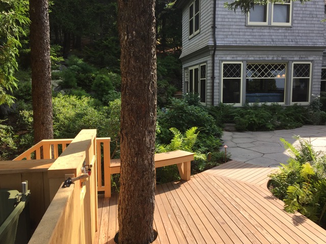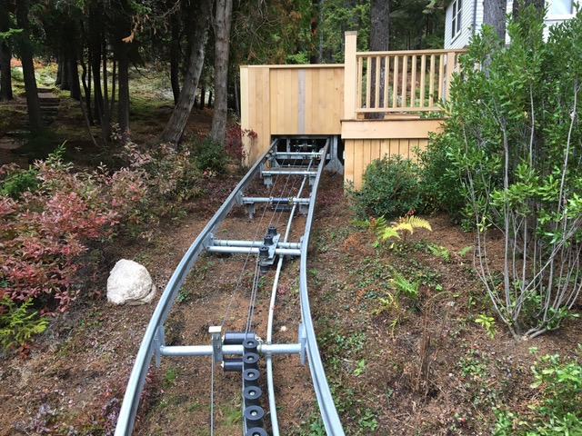 Our client felt unsafe climbing the steep, rocky hill from her parking area to her house and commissioned a design for a funicular to take her and her guests from a lower landing to an upper deck. I managed this project with minimal oversight from schematic design to construction documents. My job involved researching and communicating with manufacturers, studying topographical requirements, specifying the geometry for the track, and creating models and drawings.