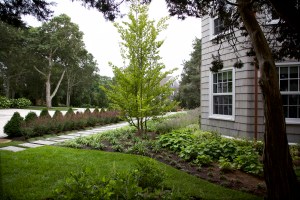 With the renovation to their house, the client also wanted to completely redesign their property. I worked directly under the principle to create a system of paths and spaces throughout their yard leading to a beach access in the backyard as well as a new carriage house and a deck with custom lounging bench.
