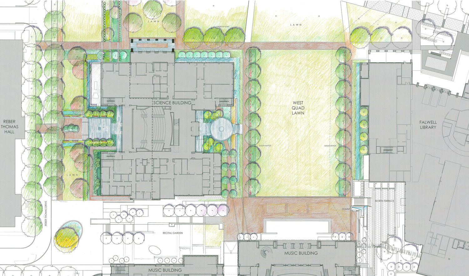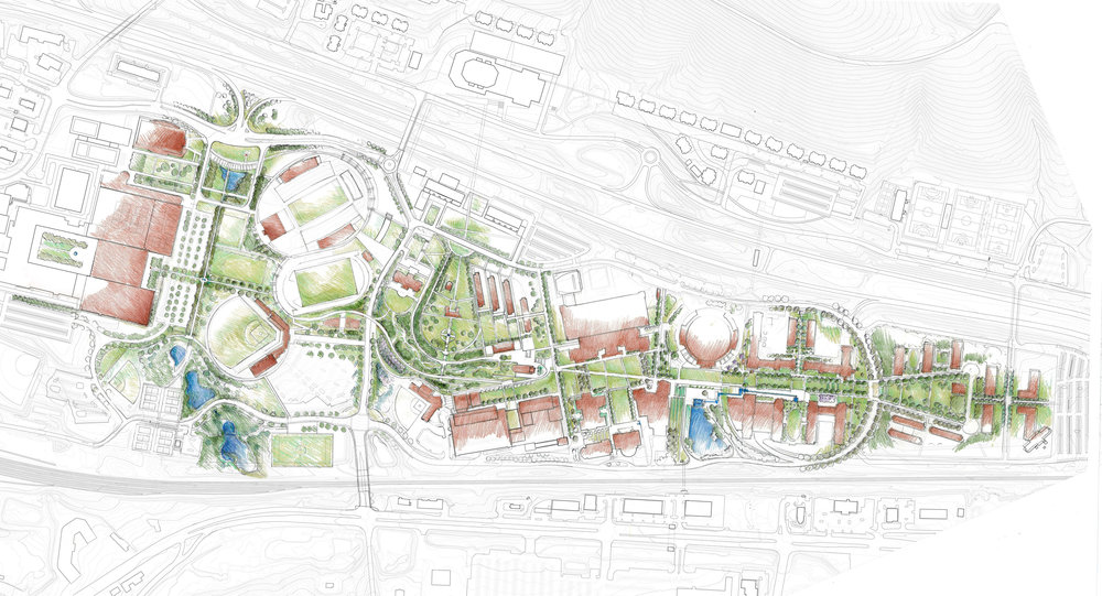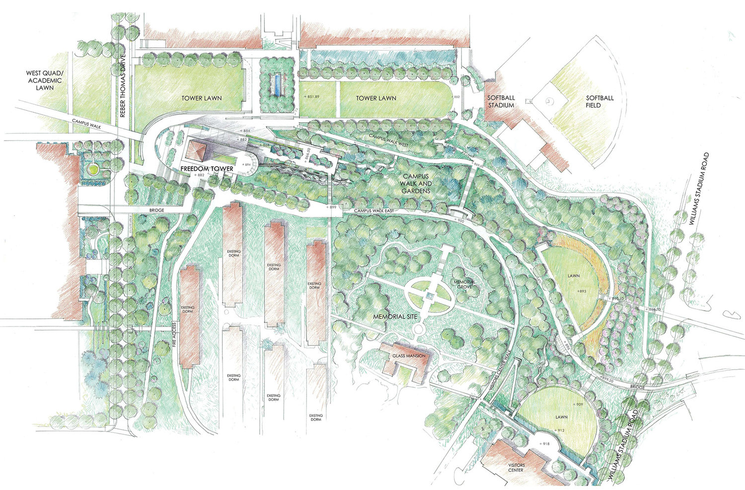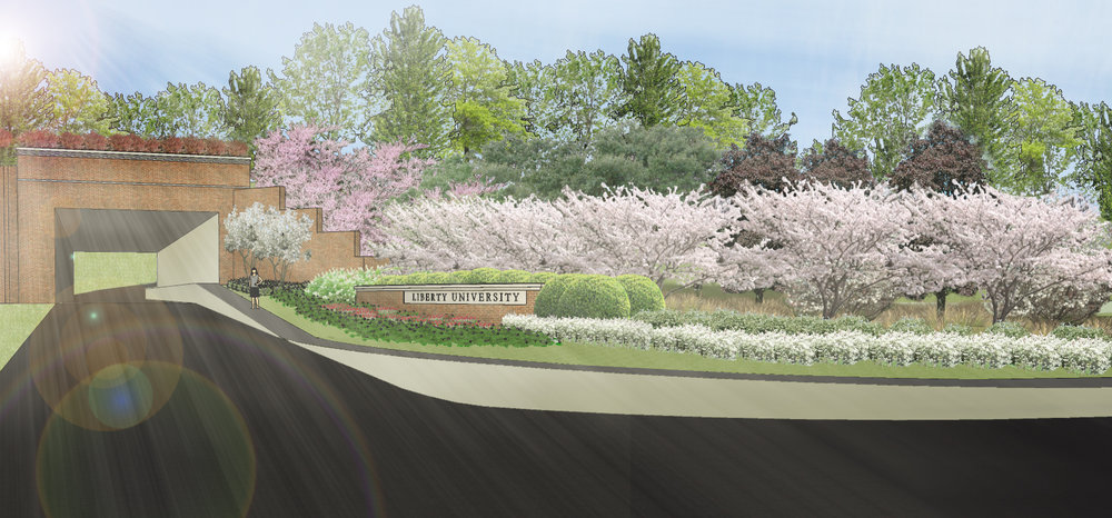 The design and implementation of the Master Plan for the redesign of Liberty University’s campus was an office-wide effort throughout the time I worked at KWLS. The task to create a space for students at a University that had previously been operating for their online presence was a huge undertaking. It consisted of multiple in-depth landscape designs for the new buildings planned and an overall concept for opening up a previously maze-like space. I drafted designs, developed renderings, and created marketing materials for many of these projects.
