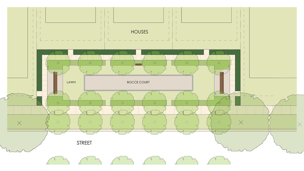 This housing development aimed to create a neighborhood that encouraged community connection and interaction through a consciously designed system of paths, green spaces, and public amenities. I worked under a project manager to design, draft, and render various projects throughout their ongoing development. The projects ranged in scale from a small postal pavilion to the extensive grounds for a neighborhood meeting hall.