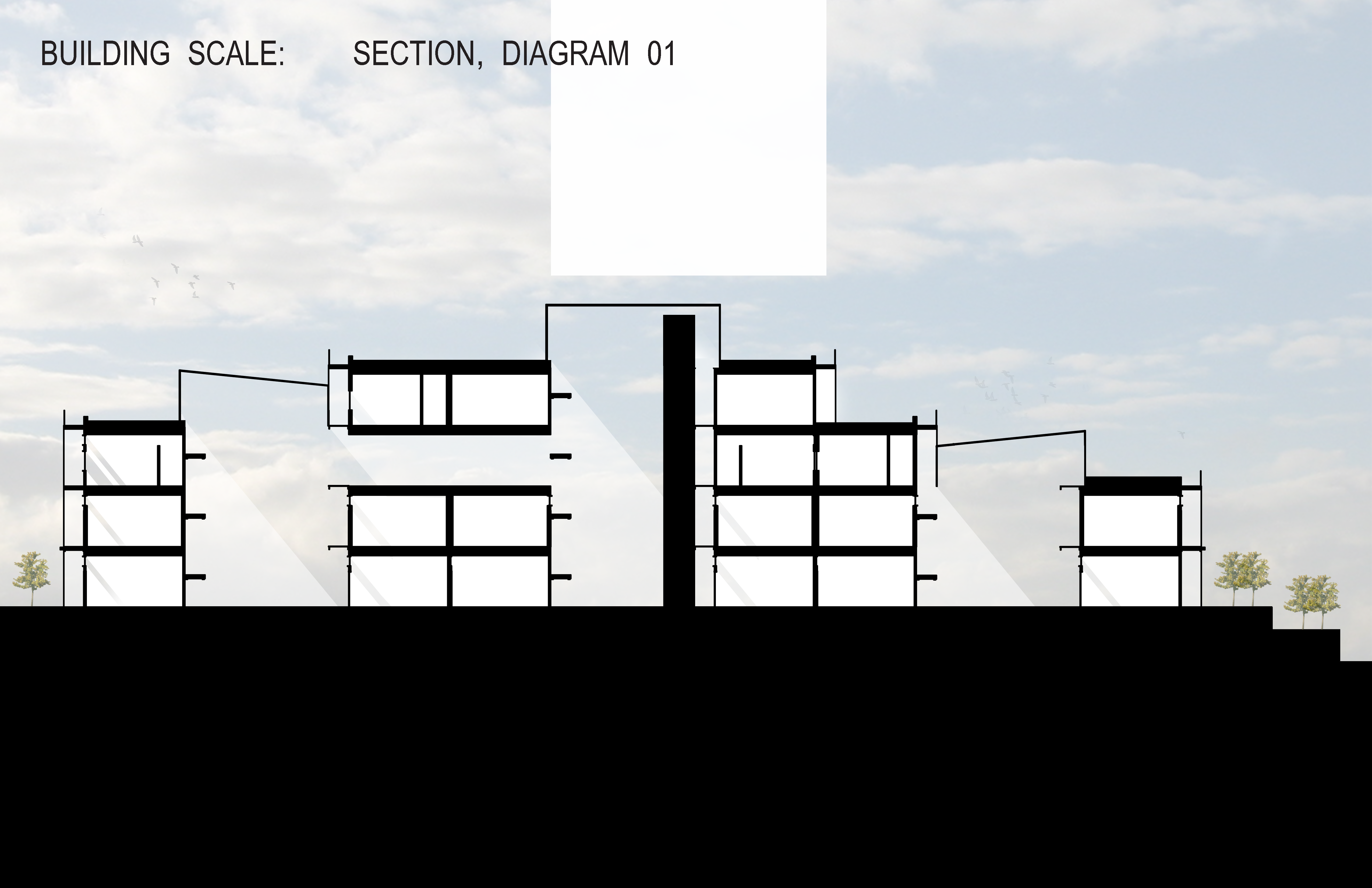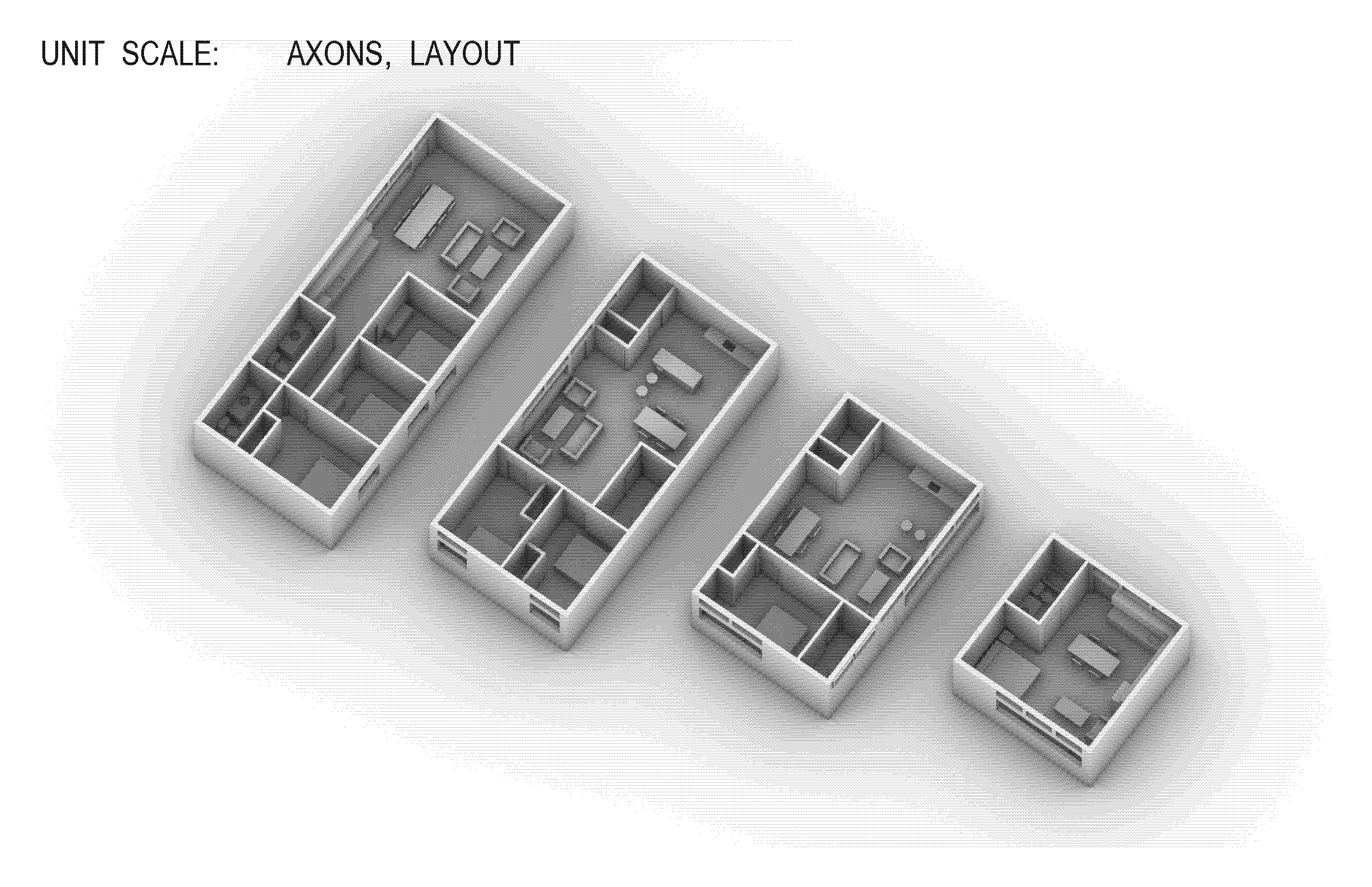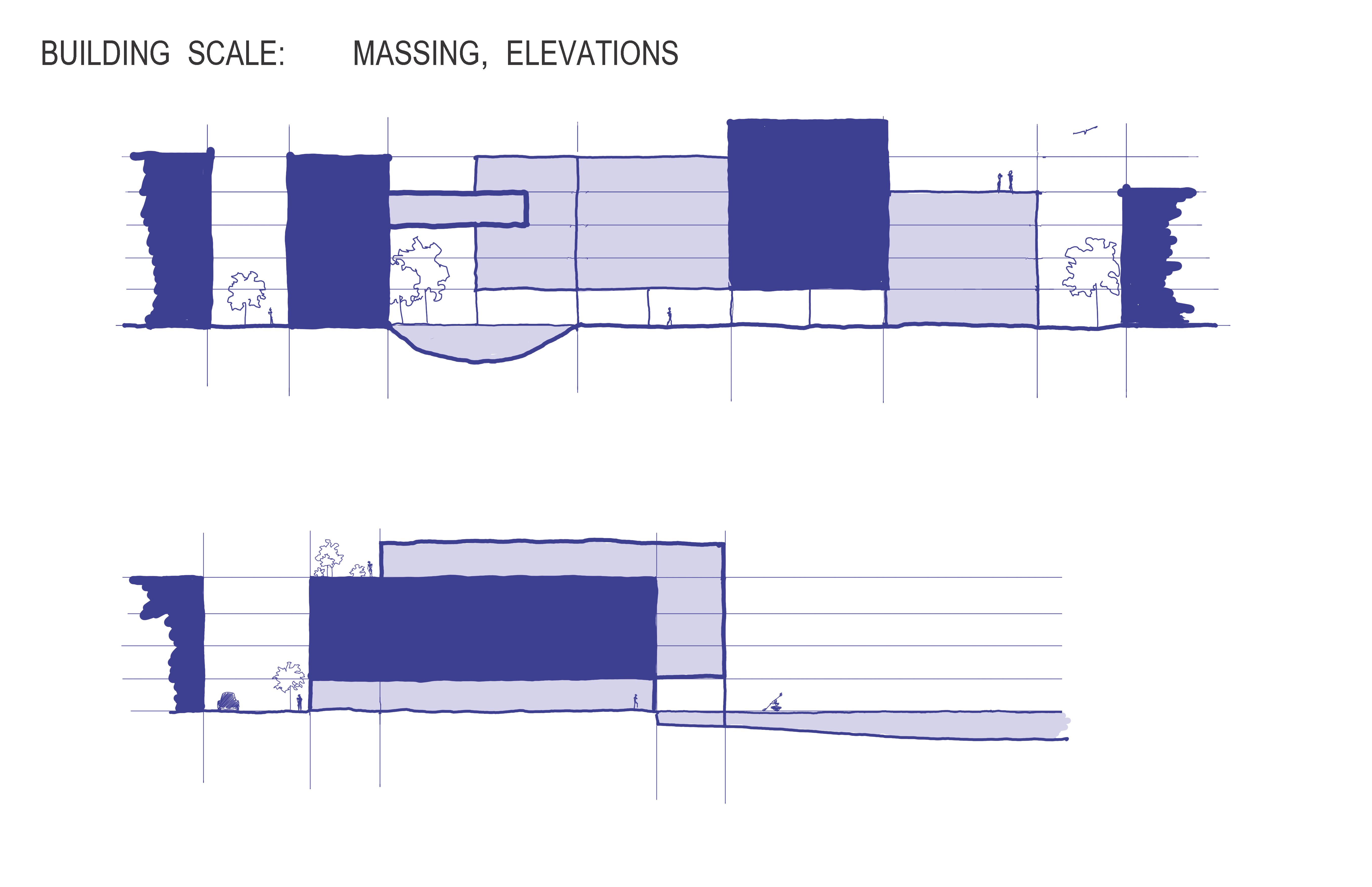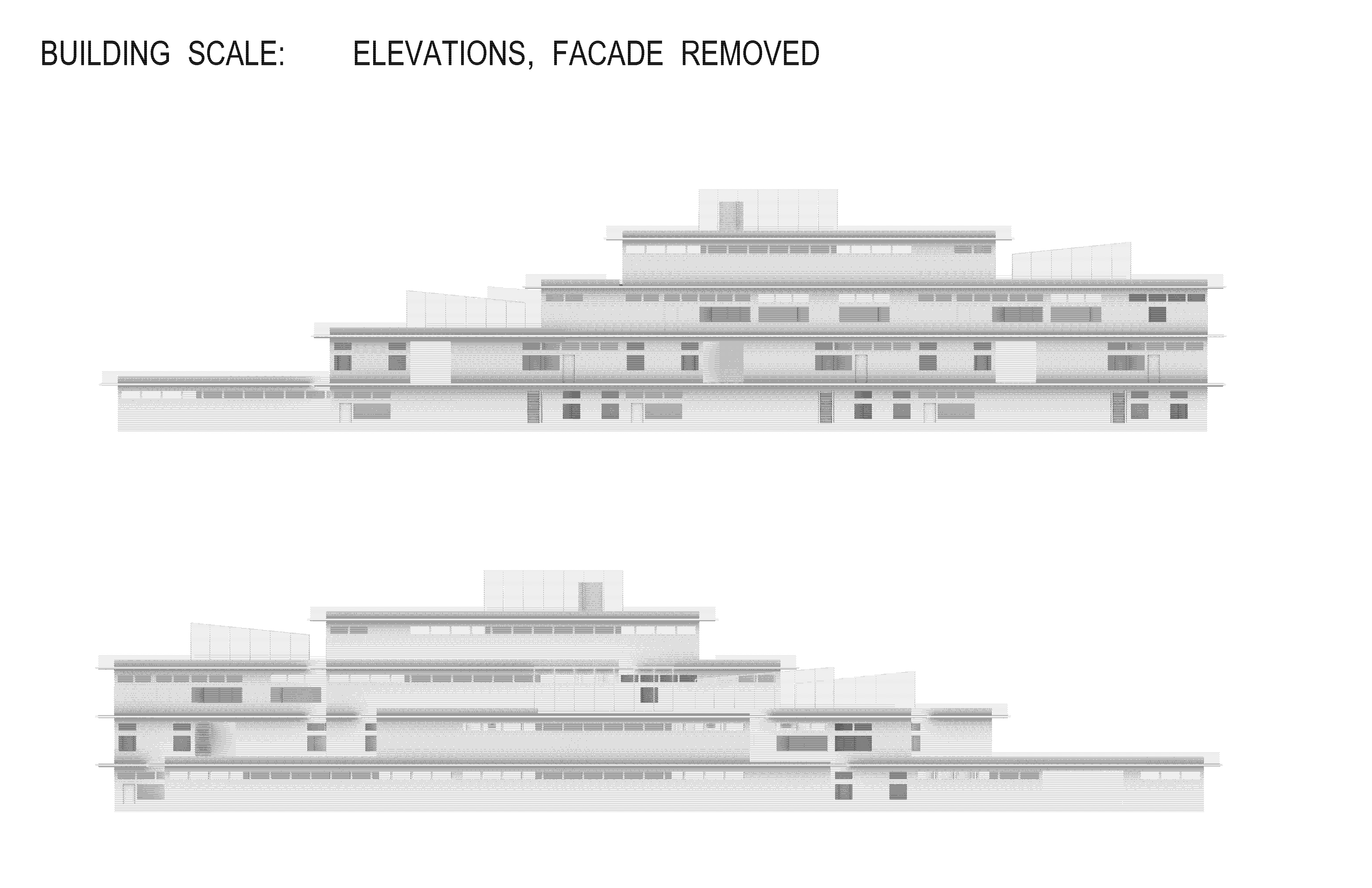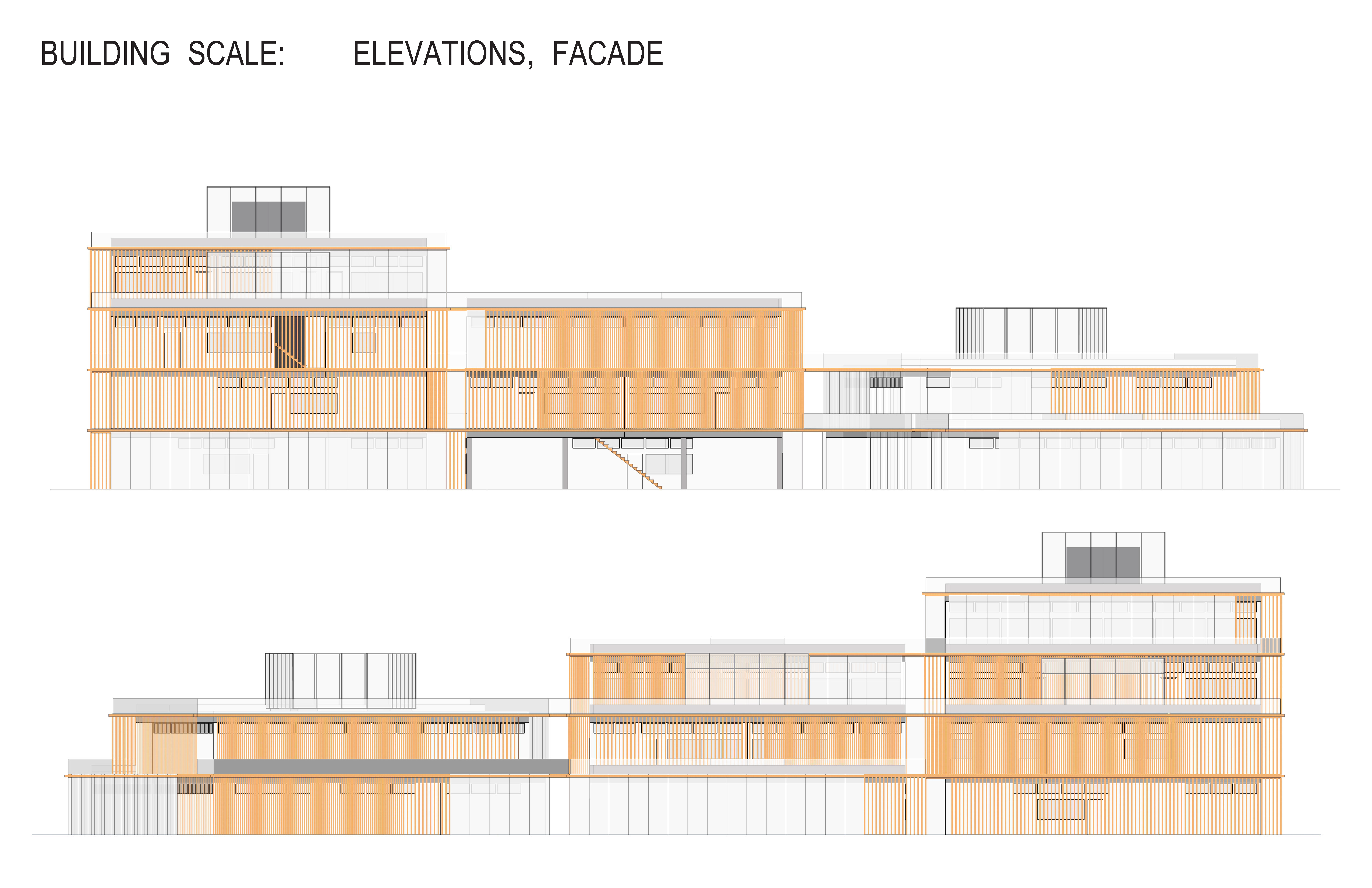 Our studio studied a site in East Boston that faces a challenging future due to its position related to rising sea levels. After doing extensive site research, we developed plans for a multi-family, multi-generational housing. Using modular building strategies, I designed a complex that would create a gradient of public to private space in order to blend the existing community needs into the program of the building. I emphasized the design of the façade as it related to my concept of the public to private gradient. Using Grasshopper and Ladybug, I analyzed how the sun and wind interacted with the site and my massing model and implemented a pattern of material layering to provide responsive lighting and wind protection.
