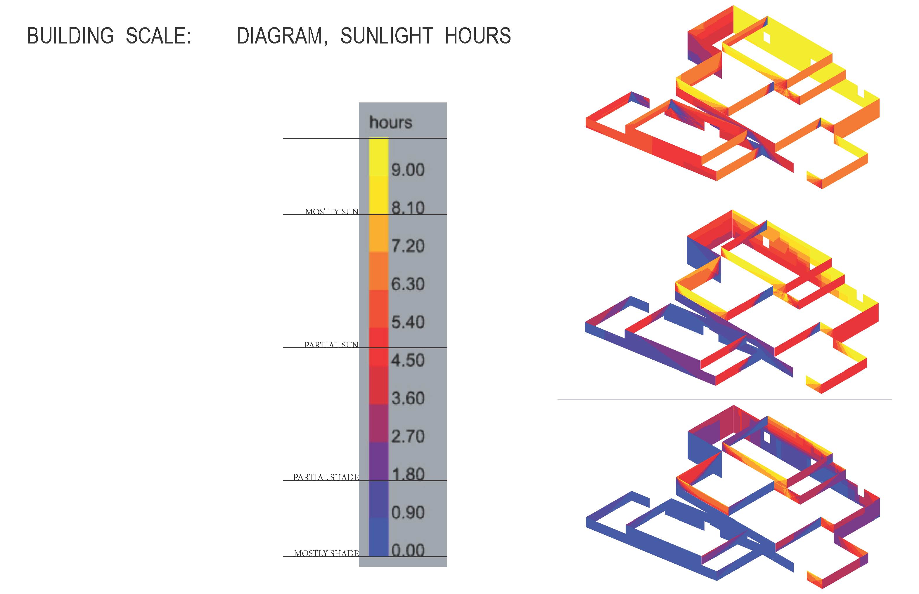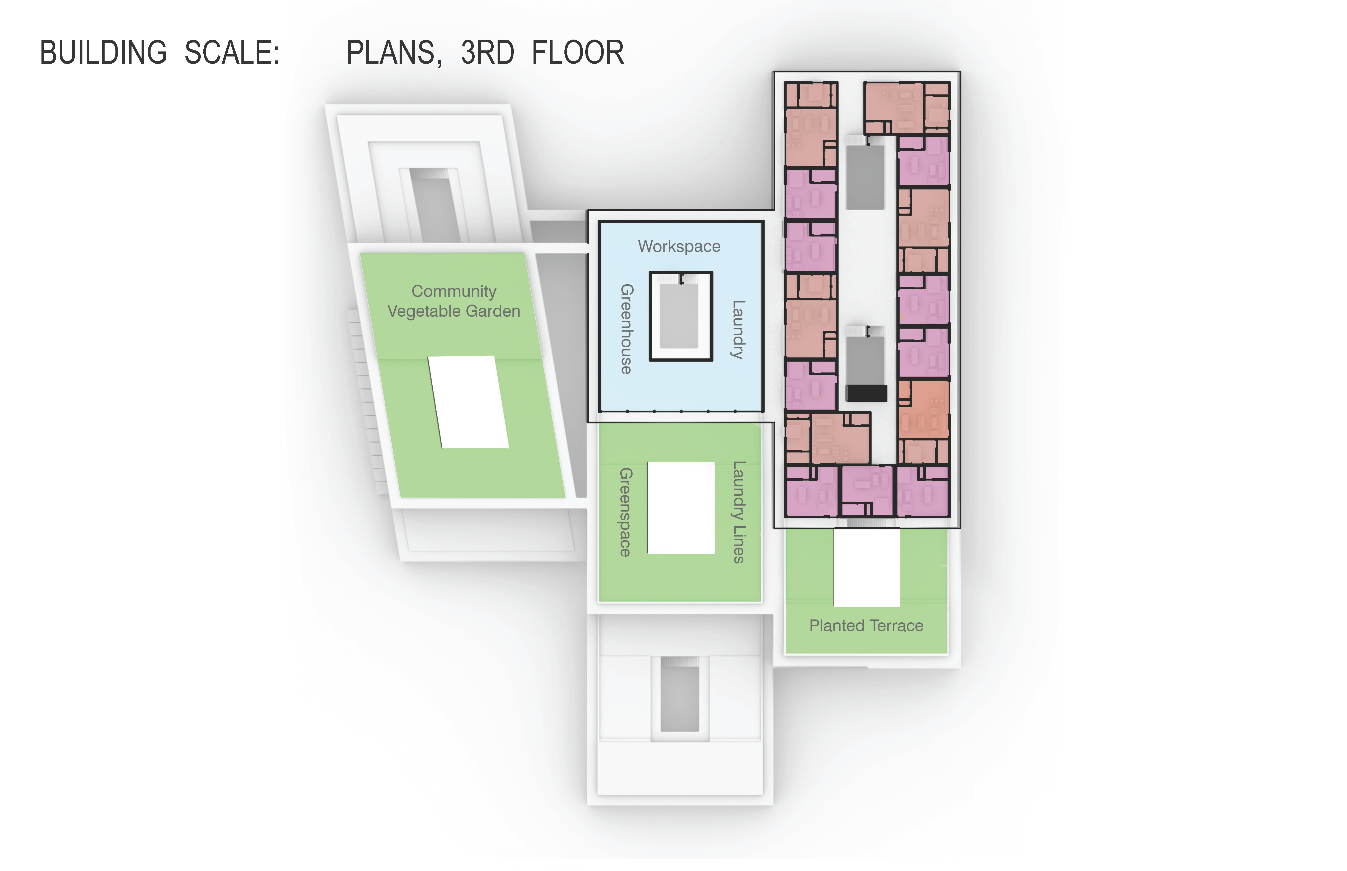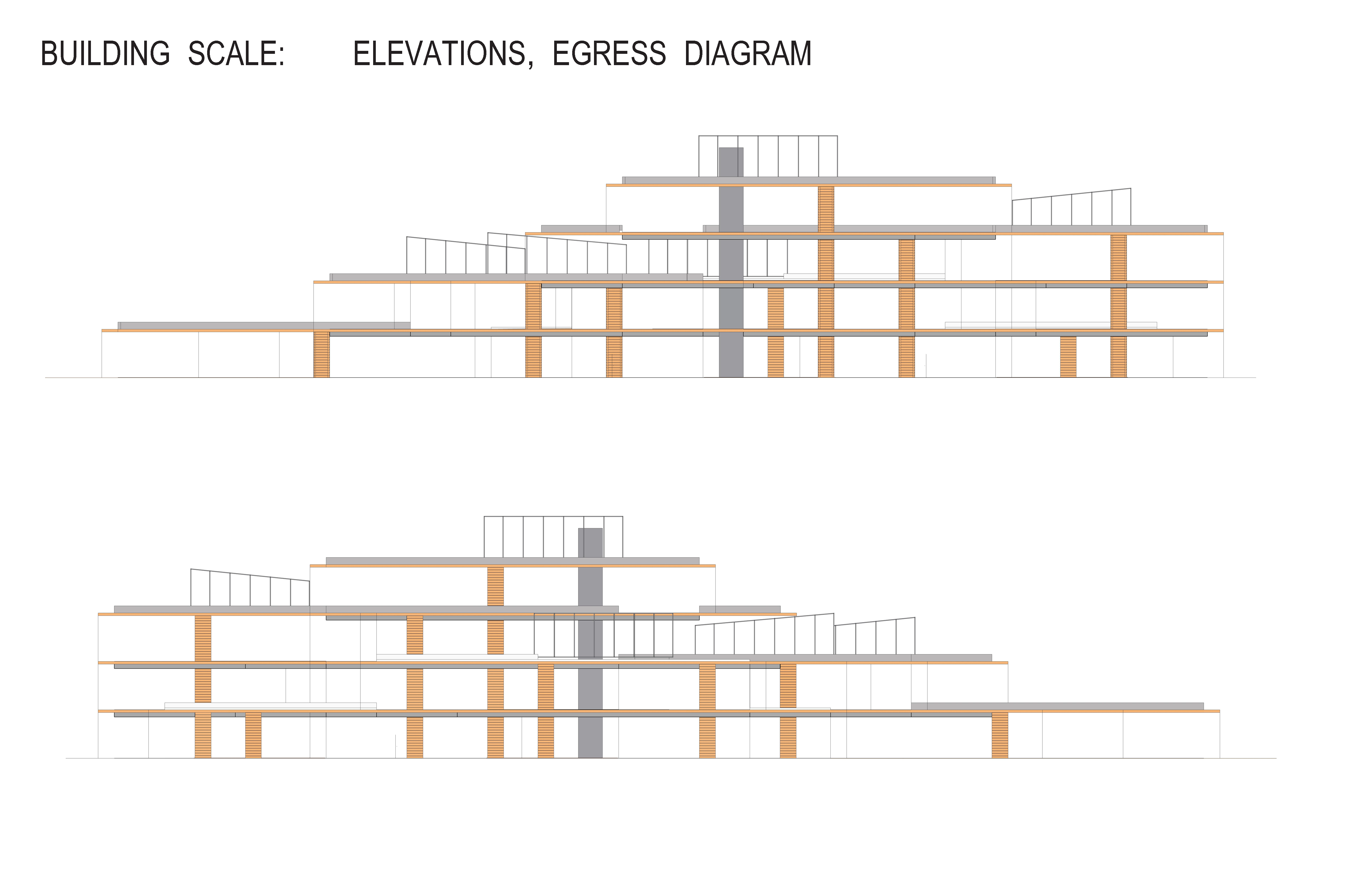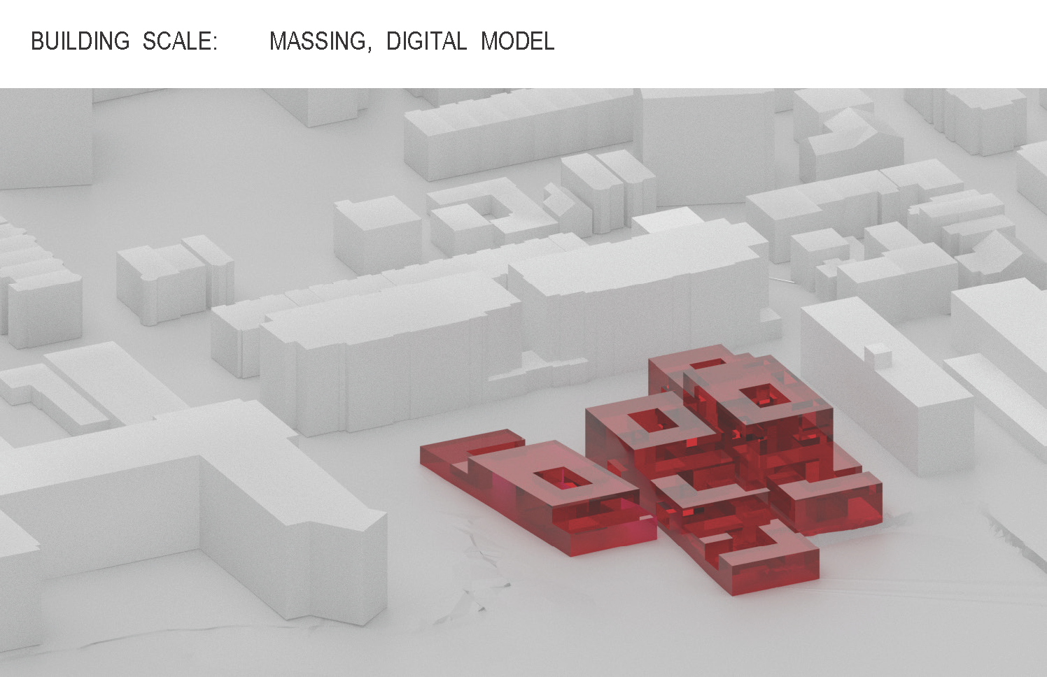 Our studio studied a site in East Boston that faces a challenging future due to its position related to rising sea levels. After doing extensive site research, we developed plans for a multi-family, multi-generational housing. Using modular building strategies, I designed a complex that would create a gradient of public to private space in order to blend the existing community needs into the program of the building. I emphasized the design of the façade as it related to my concept of the public to private gradient. Using Grasshopper and Ladybug, I analyzed how the sun and wind interacted with the site and my massing model and implemented a pattern of material layering to provide responsive lighting and wind protection.
