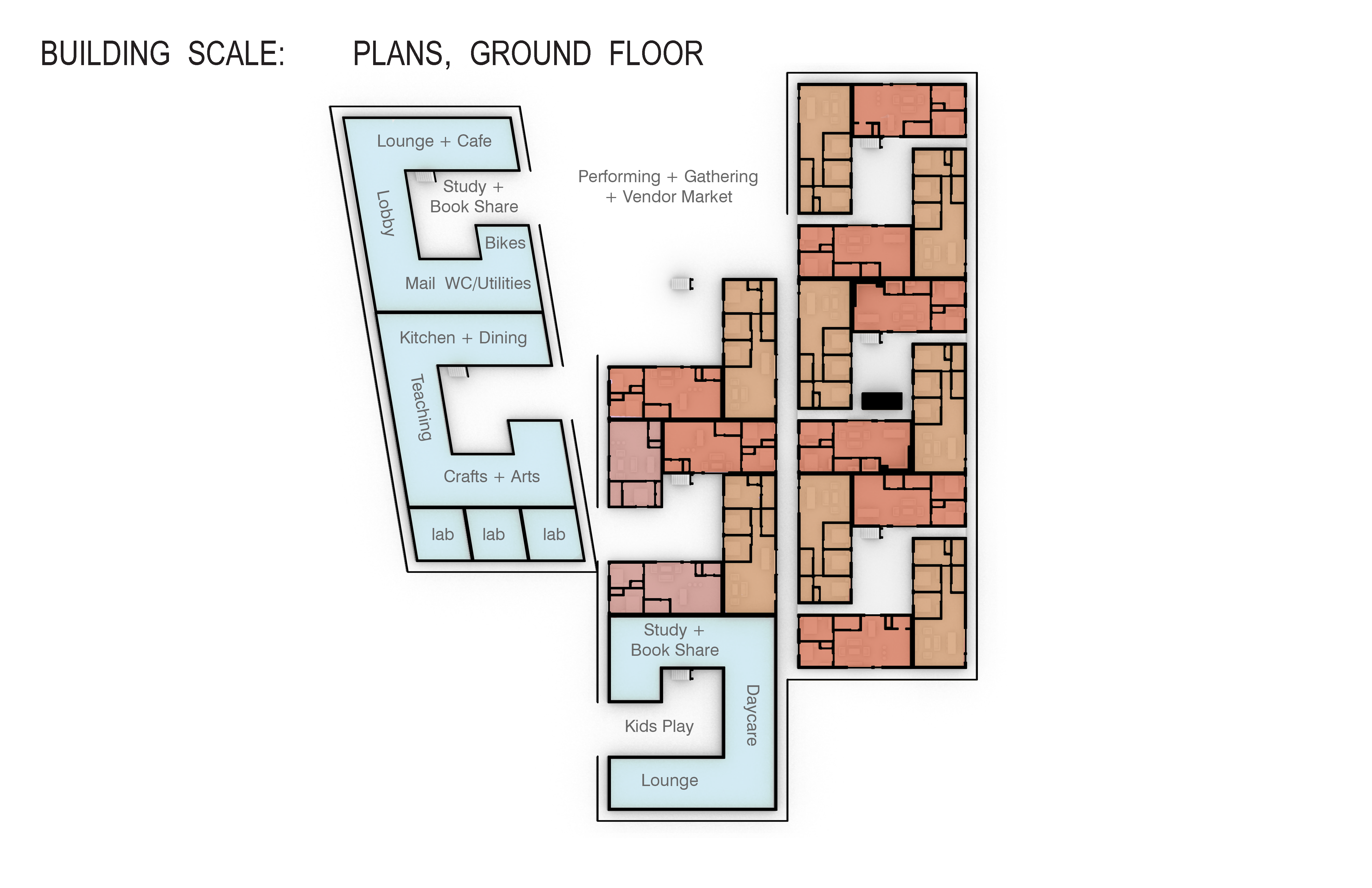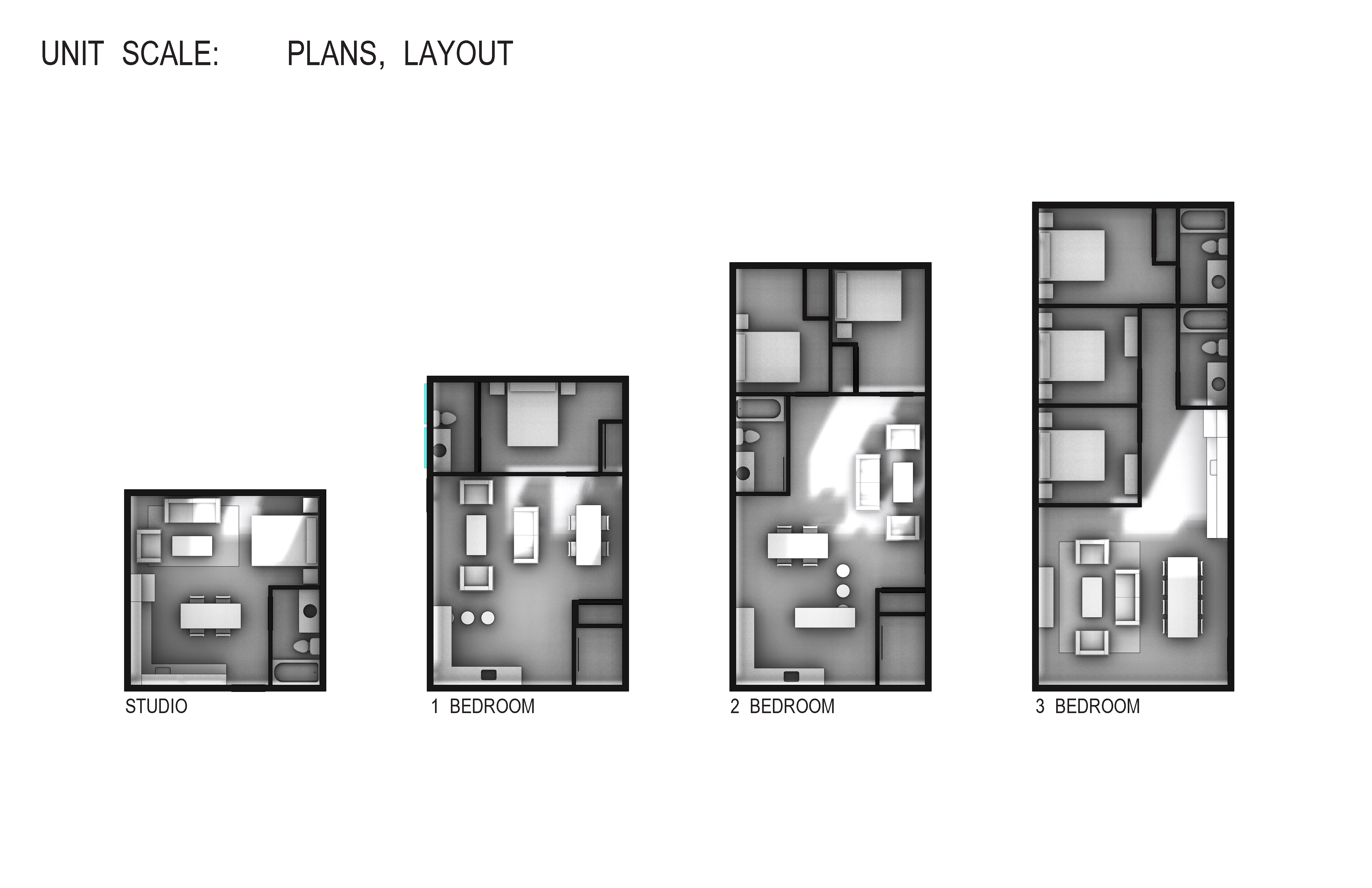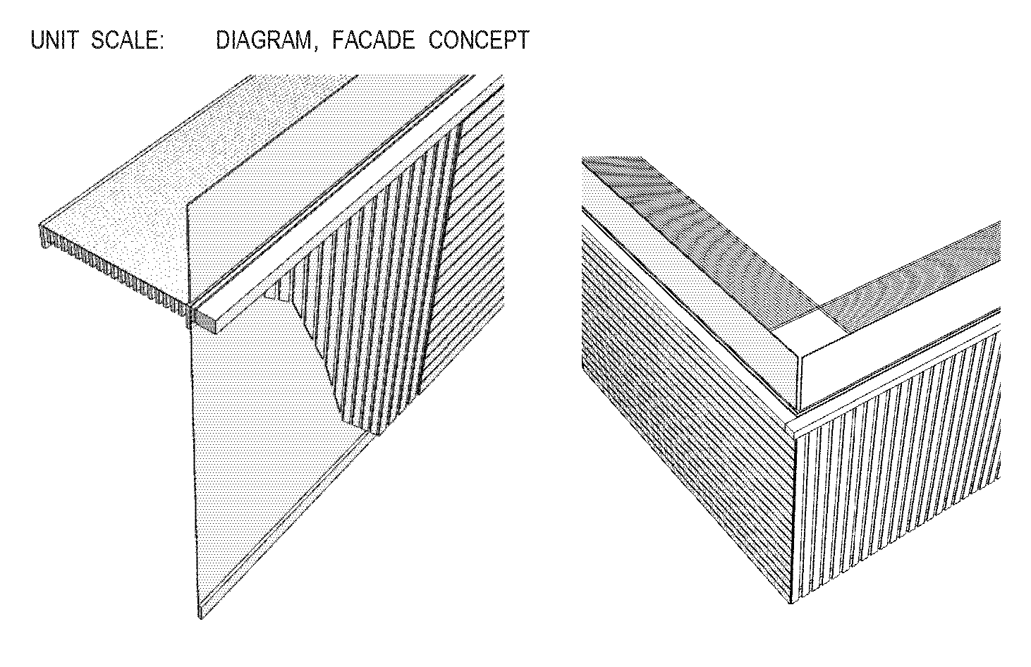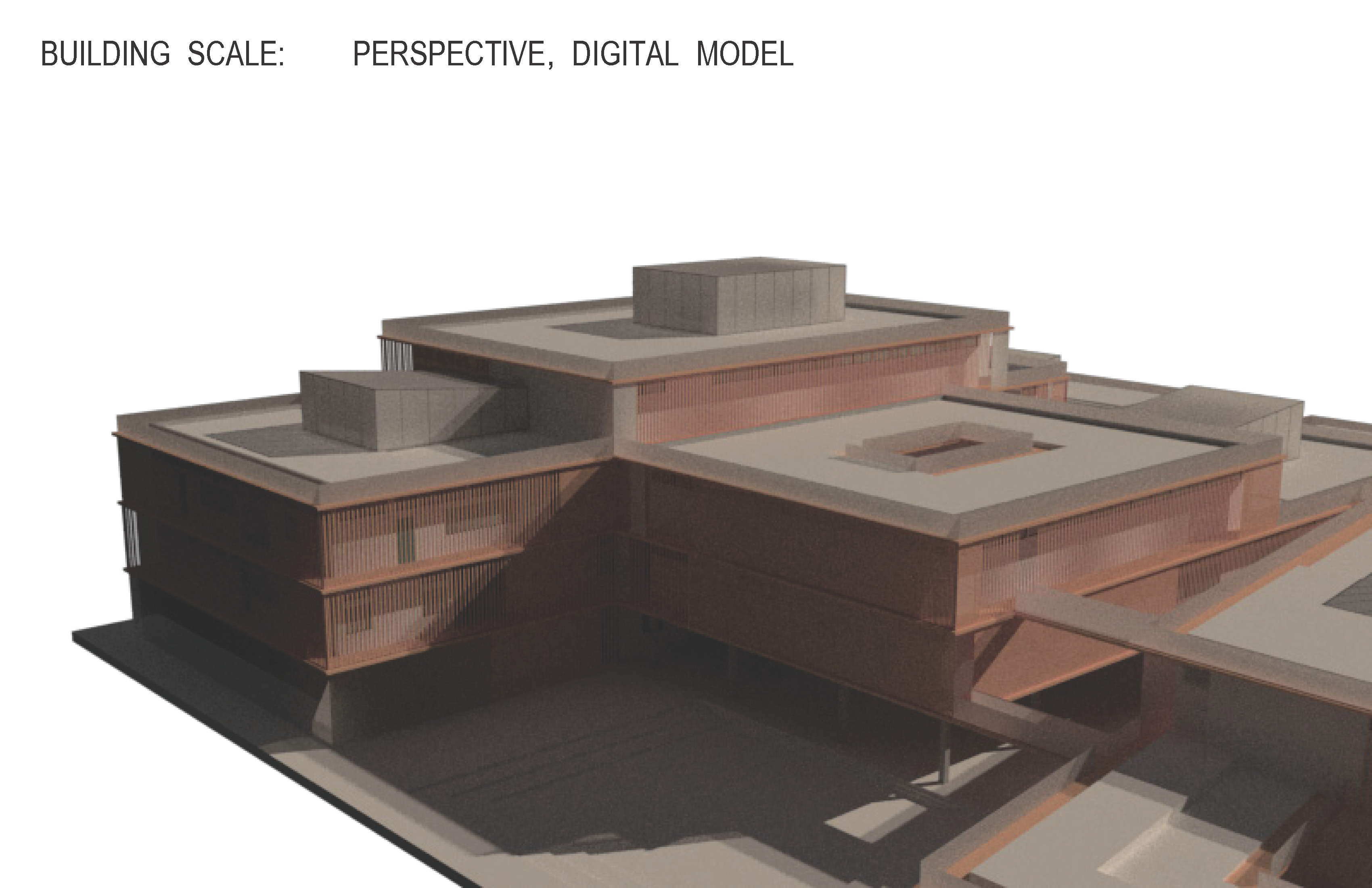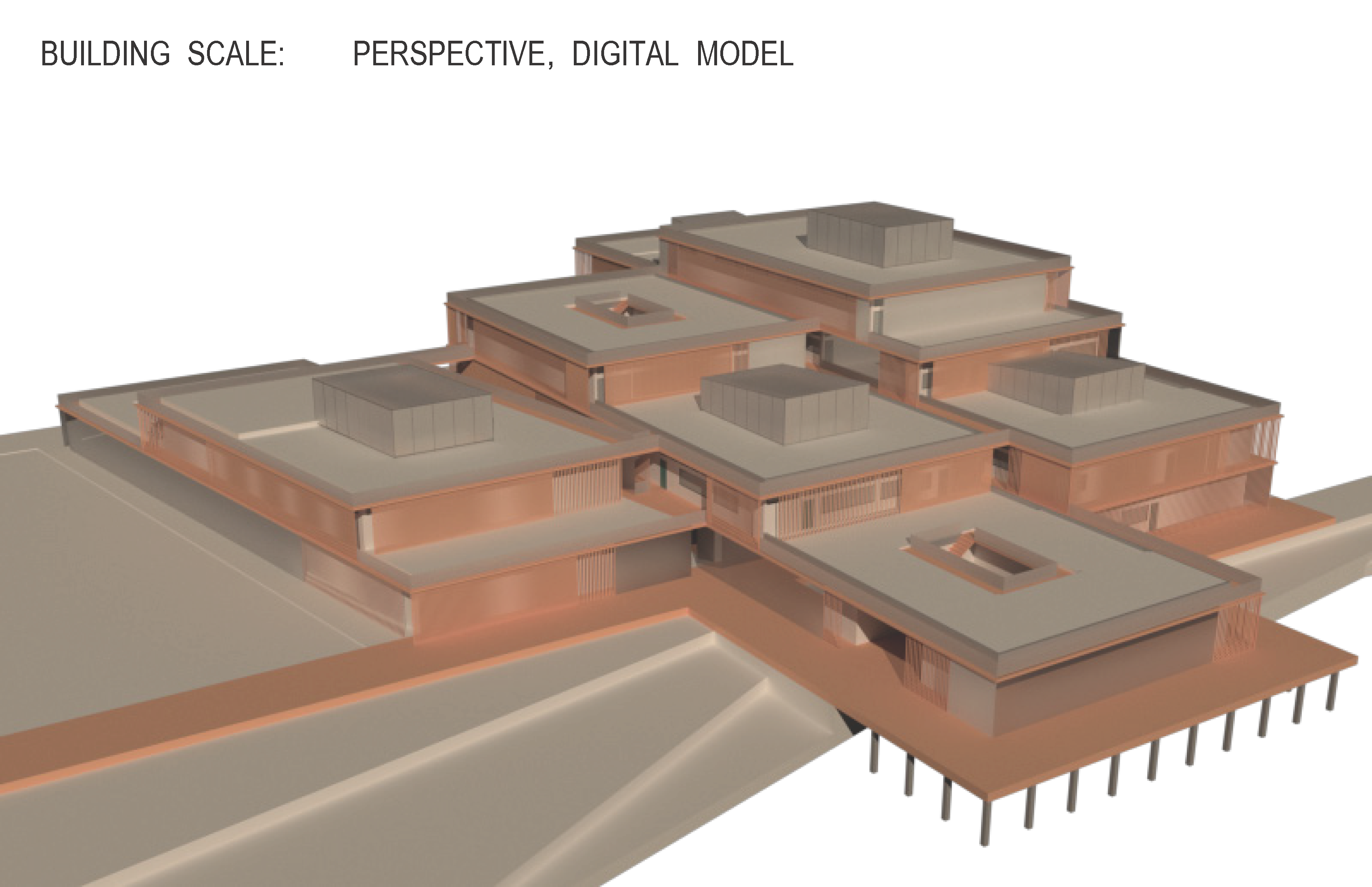 Our studio studied a site in East Boston that faces a challenging future due to its position related to rising sea levels. After doing extensive site research, we developed plans for a multi-family, multi-generational housing. Using modular building strategies, I designed a complex that would create a gradient of public to private space in order to blend the existing community needs into the program of the building. I emphasized the design of the façade as it related to my concept of the public to private gradient. Using Grasshopper and Ladybug, I analyzed how the sun and wind interacted with the site and my massing model and implemented a pattern of material layering to provide responsive lighting and wind protection.