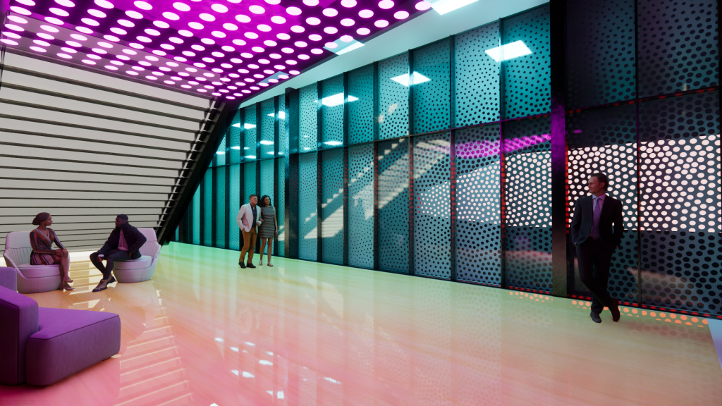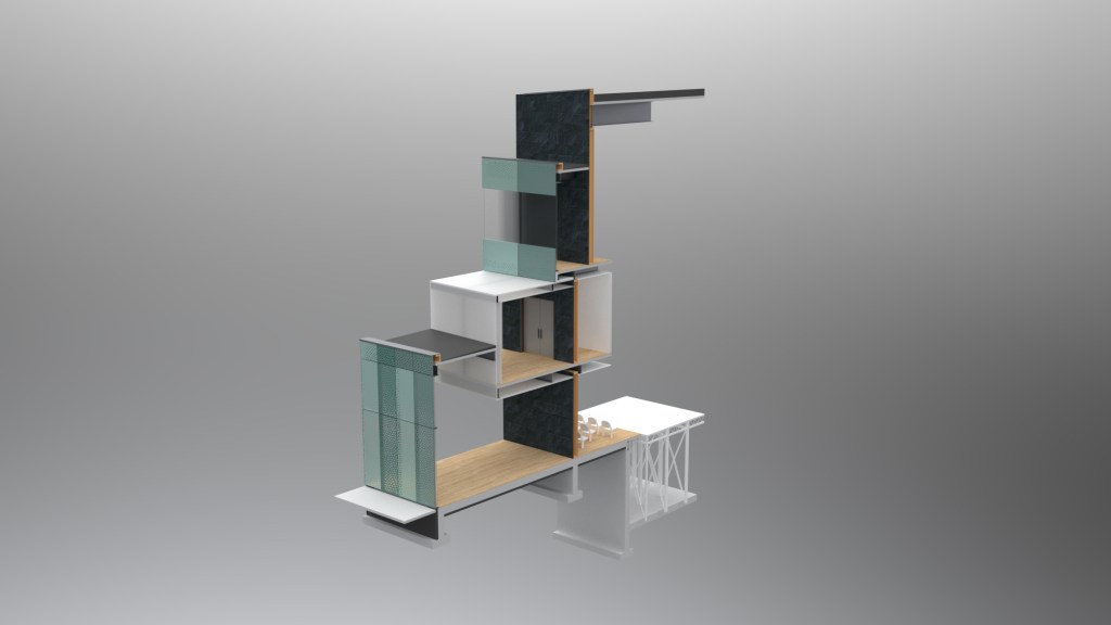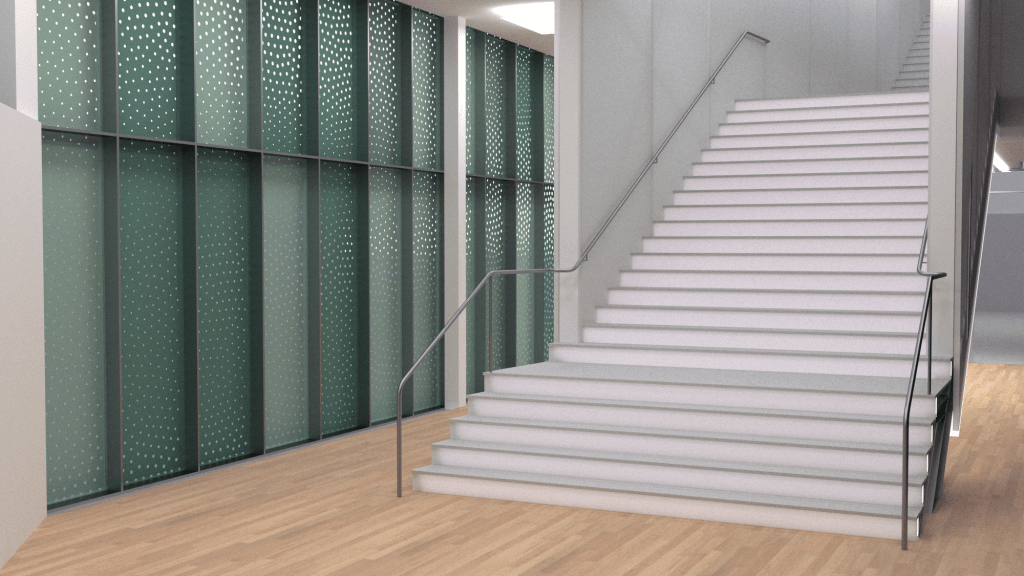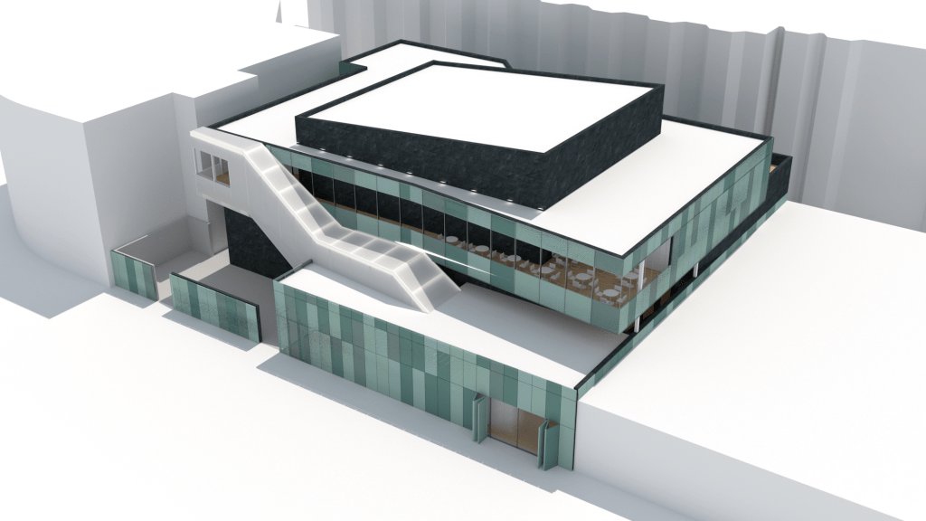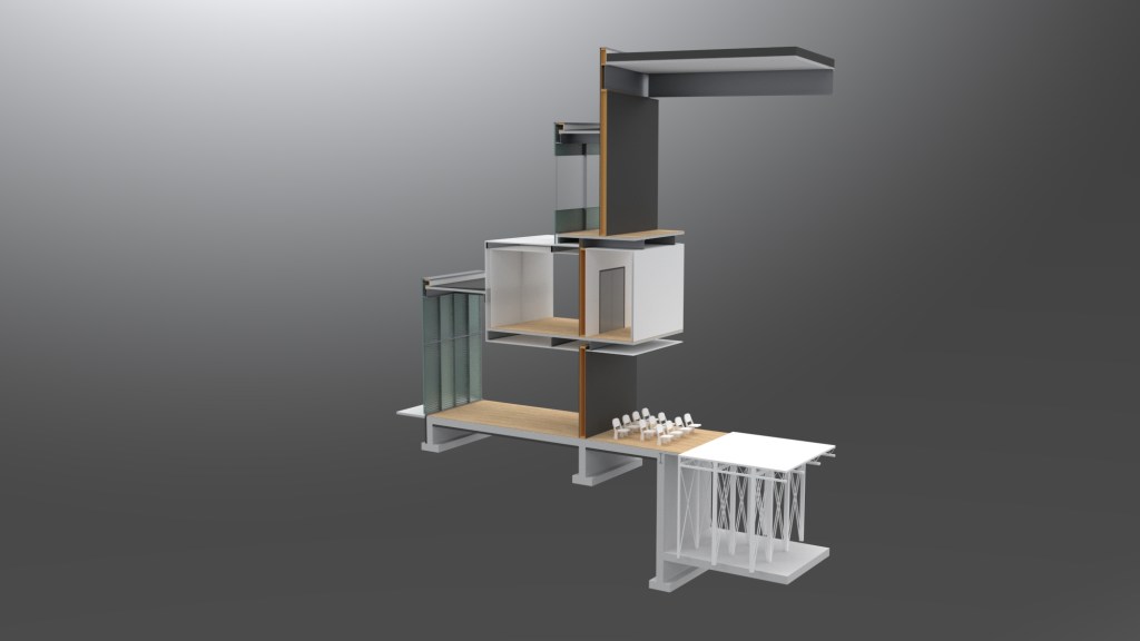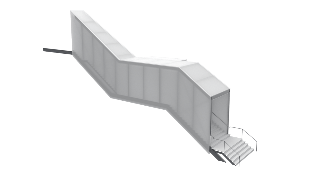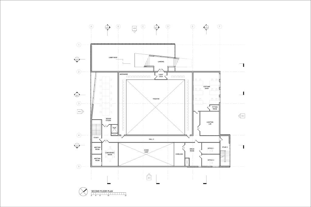 In this comprehensive studio, we designed a fully integrated black box theater in the Fenway neighborhood of Boston. The facilities included backstage production areas, theater spaces and acting resources, and a public facing lobby and recreation spaces. The goal of this studio was to dive into the detail work of particular aspects of our design. My project featured a monumental stair that rose multiple stories and transformed from interior to exterior. The stair served as a visual guide for the public, pulling them through the lobby space and up into the third floor café and restaurant spaces. The stair is sheathed in translucent polycarbonate so that it illuminates like a lantern at night to fit in with the vibrant nightlife of the area.